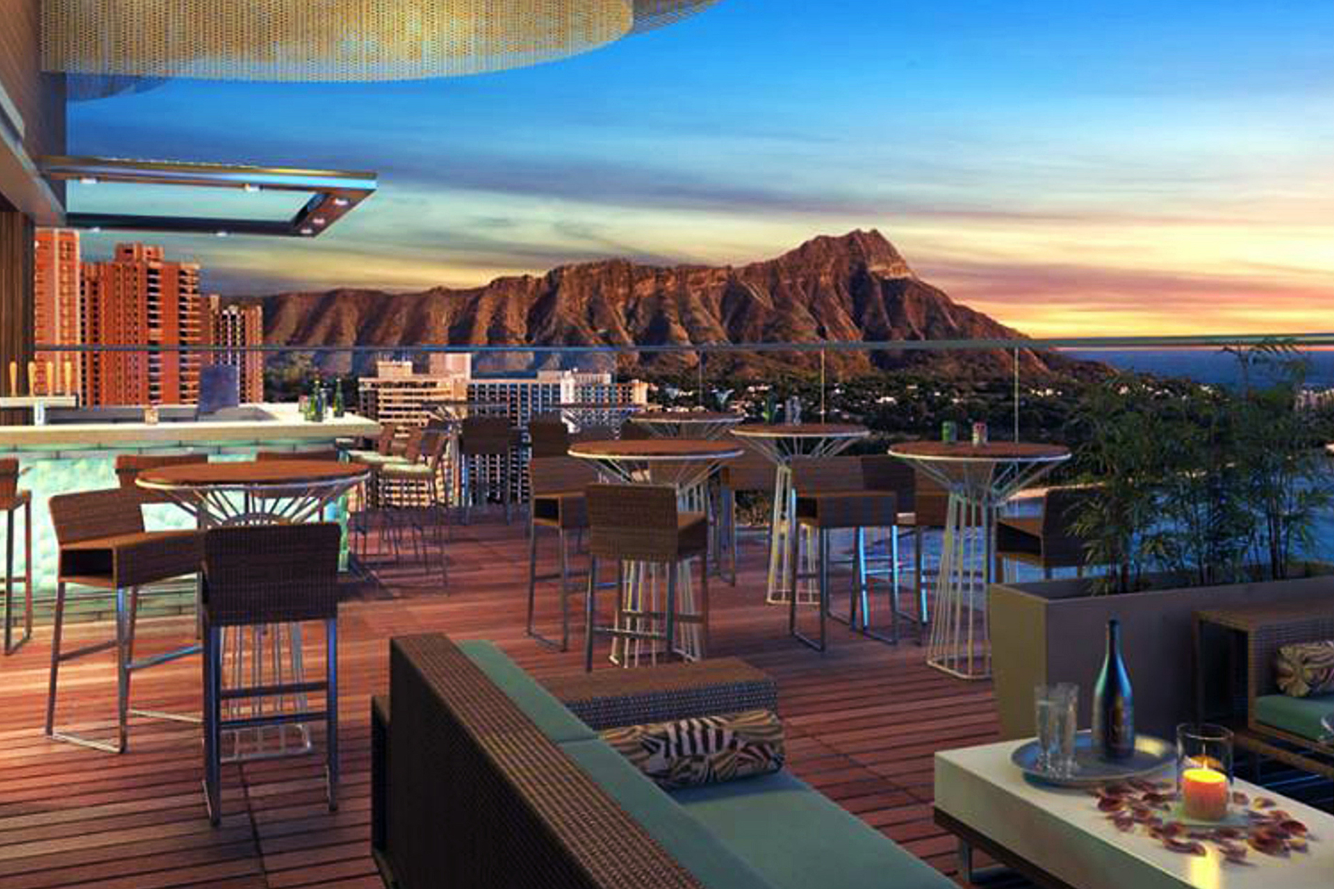 ワイキキを一望するルーフトップで味わう