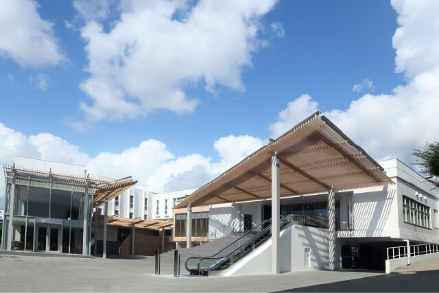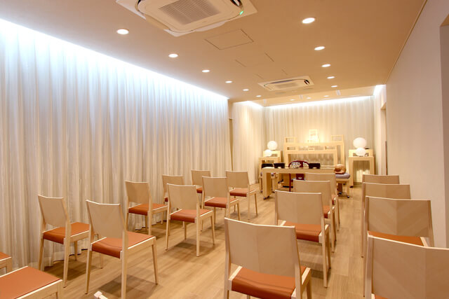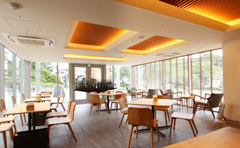 従来の葬儀場・室内墓所のイメージを一新し、明るく開放的な空間へと生まれ変わった横濱聖苑。パートナー企業とともに株式取得を行い、築50年を経過している建造物であり墓埋法上の制約もある中、建物の改修と付加価値の創出を両立させたプロジェクトです。事業再生のコンセプトは「人が集い、憩いのひとときを過ごせる場」。大切な法要では、和食の笠原将弘氏・イタリアンの落合務氏が監修した料理を提供しています。敷地内には鎧塚俊彦氏監修のカフェを常設し、近隣の方が散歩や休憩に訪れるコミュニティスペースとしても親しまれています。建築デザインは隈研吾氏が担当。洗練された空間が地域景観に新たな価値をもたらし、施設の不動産価値の最大化にも寄与しました。